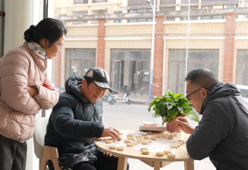 社区居民在活动区域下棋