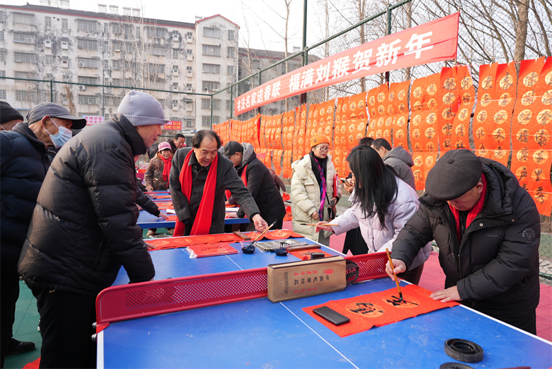 "这比印刷的更有年味!我要贴在大门上。"刘猴镇前湾村村民王大爷拿着刚写好的春联高兴地说。