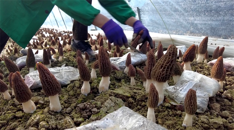据该公司湖北地区总经理余亚军介绍:“宜城郑集镇的土壤非常适合羊肚菌生长。去年11月种下,现在菌丝转化率非常高,迎来大丰收。目前在余营、何骆等8个村共种植3000亩,建有8000个标准化大棚,预计总产量可达360万斤,亩产约1200斤。”
