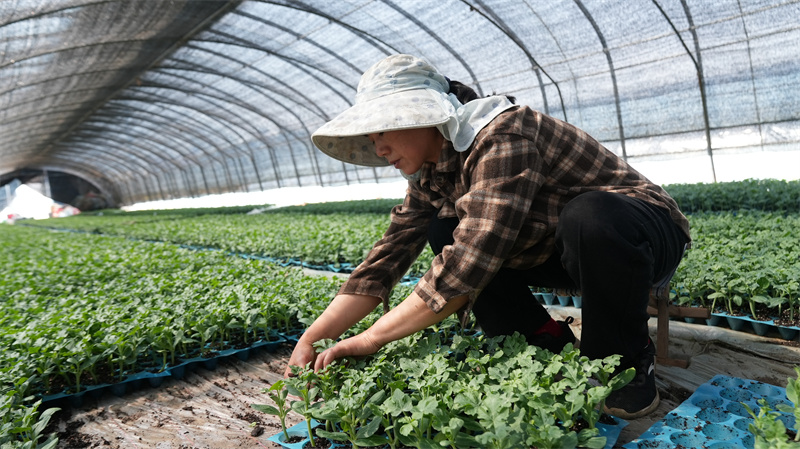 廖清华口中的育苗大棚,是双泉村这两年新建的5个智能温控大棚。走进棚内,一排排育苗盘整齐摆放,嫩绿的瓜苗长势喜人。基地负责人方秀林告诉记者,这里年育苗能力达30万棵,今年育了20万棵苗,主要供应本村80%的种植户,目前已售出13万棵,周边不少农户也慕名前来购买。