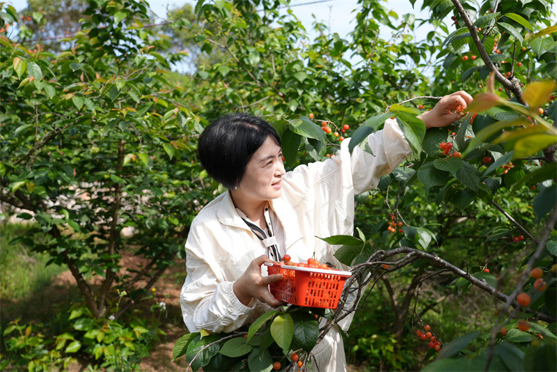 正在自家樱桃园里忙碌的种植大户万琴,脸上洋溢着丰收的喜悦。她望着挂满枝头的红樱桃,给记者算起一笔幸福的“增收账”:“今年樱桃产量可以、口感也好。村里设施升级后,游客多了,樱桃不愁卖。不光樱桃能挣钱,来农家乐吃饭的人也多了,又增加了一份收入。这日子就像树上的樱桃,越过越甜。”