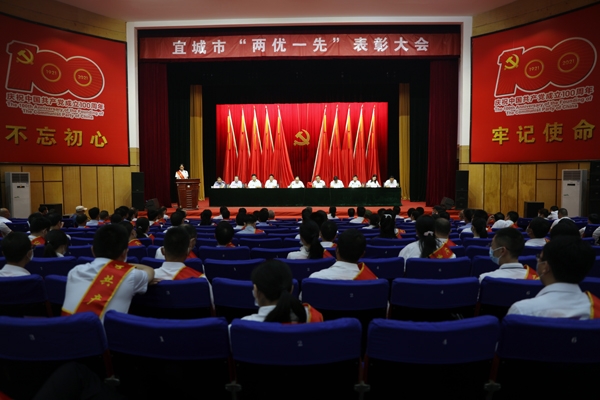 本网讯记者李勤 周波报道:6月28日,宜城市“两优一先”表彰大会在人民会堂召开,热烈庆祝中国共产党成立100周年,回顾党的光辉历程和丰功伟绩,为“光荣在党50年”的党员代表颁发纪念章,表彰一批优秀共产党员、优秀党务工作者和先进基层党组织,激励全市广大党员干部不忘入党初心,牢记使命担当,以思想破冰引领发展突围,奋力谱写“千亿级、五十强、幸福城”的新篇章。
