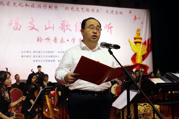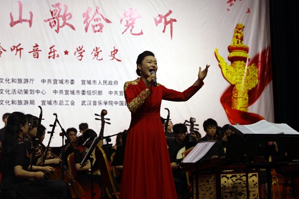 本网讯记者李勤 周波报道:6月28日,宜城市人民会堂歌声嘹亮、乐声阵阵,省文化和旅游厅荆楚“红色文艺轻骑兵”走进宜城,《唱支山歌给党听》聆听音乐学党史·特色音乐党课在这里举行。全市机关党员干部代表现场聆听了党史经典革命歌曲,重温党史经典文艺作品,庆祝中国共产党成立100周年。市领导武义泉、严广超现场聆听。