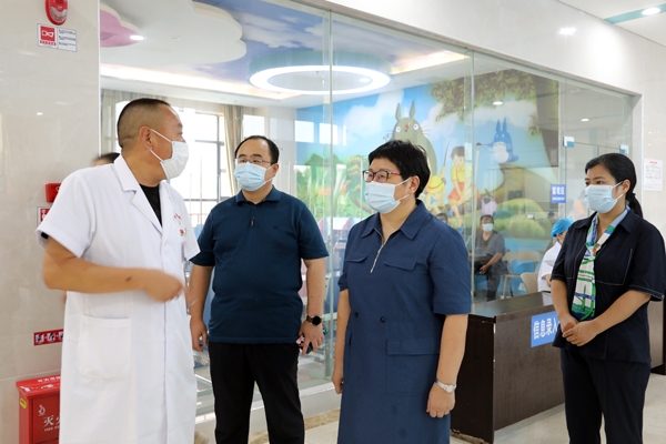 郭静一行与宜城党政领导和有关单位负责人进行座谈,听取了我市疫苗接种、生态环境保护督查反馈问题整改和新一轮强降雨防范应对工作情况介绍,并实地查看了鄢城办事处窑湾社区卫生室疫苗接种点、龙头办事处七里花园小区流动接种点、妇幼保健院疫苗接种点。