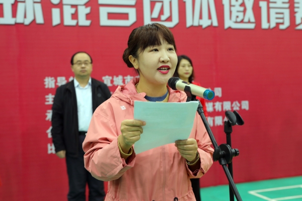 副市长那·娜仁高娃致辞。她说,为了不断满足人民群众日益增长的精神文明需求,近年来,宜城市坚持以习近平新时代中国特色社会主义思想为指导,认真实施《全民健身计划纲要》,组织开展了多种形式的职工群众性文体活动。燕京啤酒(襄阳)有限公司积极响应号召,举办襄阳市羽毛球邀请赛,给文体活动“强身、健心、睦邻、乐群”提供了载体,促进了人的全面发展和社会和谐。“生活奔小康,身体要健康”,已逐渐形成社会共识,健身活动已成为广大人民群众的自觉行动。