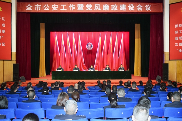 本网讯记者张尚东 刘毅报道:2月22日,全市公安工作暨党风廉政建设会议在市人民会堂召开。市委书记武义泉强调,全市公安机关要勇担新时代职责使命,为全市高质量发展创造安全稳定的政治社会环境;要准确把握新时代公安执法方向,营造良好的法治化营商环境,努力为推进“千亿级、五十强、幸福城”建设作出公安贡献。