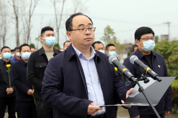 宜城市委书记武义泉致祭文:"一个有希望的民族不能没有英雄,一个有前途的国家不能没有先锋。今天,我们祭奠英烈,就是要不忘初心、不忘来路,更加紧密团结在以习近平同志为核心的党中央周围,以英烈的精神凝聚众志、以英烈的浩气汇聚力量,赓续红色血脉,传承红色基因,主动作为、奋发有为、担当善为,为加快建设"千亿级、五十强、幸福城"贡献当代宜城人的智慧和力量!"