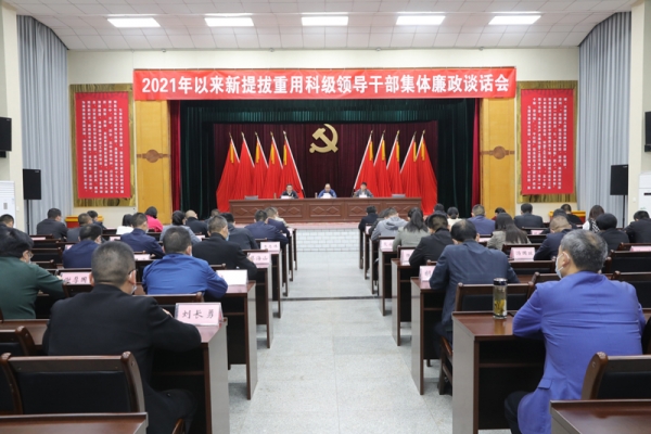 本网讯记者李勤 邬玲玲报道:4月19日,宜城市召开2021年以来新任科级领导干部集体廉政谈话会,市委书记武义泉出席会议,勉励新任领导干部在新的岗位上要始终保持清醒头脑,时刻从严要求自己,干净干事、奋发有为。