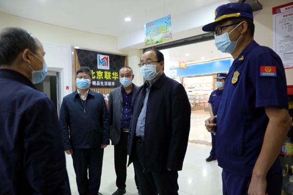 本网讯记者李勤 周波报道:4月30日,宜城市委书记武义泉带领有关单位负责人到商场、影剧院、燃气公司、企业等地,检查消防安全和疫情防控工作。