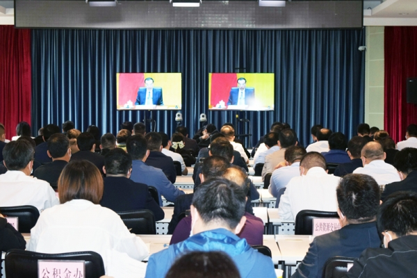 市领导肖平、蔡正方、朱晓林、周大为、张红波、陈珊在宜城分会场参加会议。