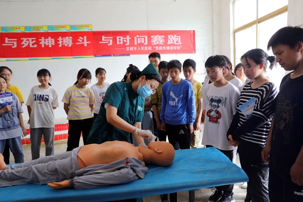 “急救先锋队” 由市人民医院从事医疗急救专业工作多年、经验丰富的医护人员组成,在孔湾镇政府、孔湾中学,“急救先锋队”开展了急救理论知识和实践操作两个环节的培训。在理论知识讲解环节中,结合日常实例,耐心细致地讲述了气道异物梗阻急救、心肺复苏术紧急救护、触电急救、溺水急救的基本原则、方法步骤等急救知识。