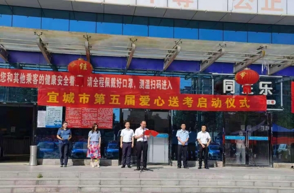 本网讯通讯员雷瑶  记者易振波报道:在2021年高考、中考来临之际,6月5日,宜城市第五届“爱心送考”公益活动启动仪式在宜城市汽车客运站举行,为参加今年高考、中考的莘莘学子助力、加油。