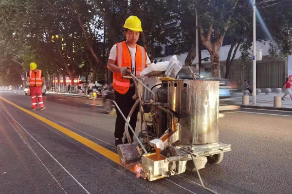 本网讯记者李勤 周波报道:6月12日,施工人员加班加点对宜城市自忠路标志标线进行重新施划,进一步完善道路功能,规范交通秩序。