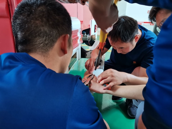 本网讯记者钟军 通讯员张金蓉报道:日前,宜城市消防救援大队接到一名男子求助。该男子的手指不慎被戒指卡住,出现红肿充血,急需救助。宜城消防紧急处置,在10分钟后将戒指成功取下。