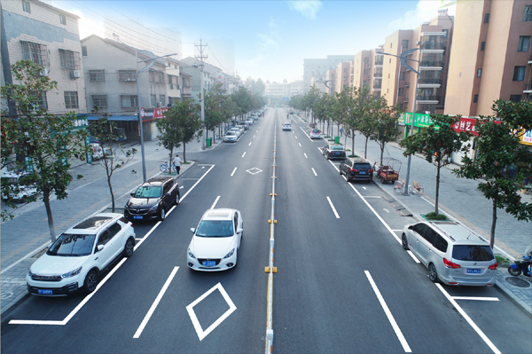 此次道路标志标线更齐全、更适用、更美观。标线采用反光热熔材料施划,材料干燥时间短,操作简单,对交通干扰较小,同时具有色彩鲜明、逆反射能力强、反光度高,白天和夜间都具有良好的辨识度,并具有良好的抗滑性和耐磨性,可以有效提高行车安全和标线使用寿命。主干道道路中心线以及部分路段设置的横向减速标线采用震荡标线,对车辆驾驶人起到直观提示作用,有利于道路行车安全。标志以需求和问题为导向,优化信息指引,更好地服务群众出行,提高道路运行效能。